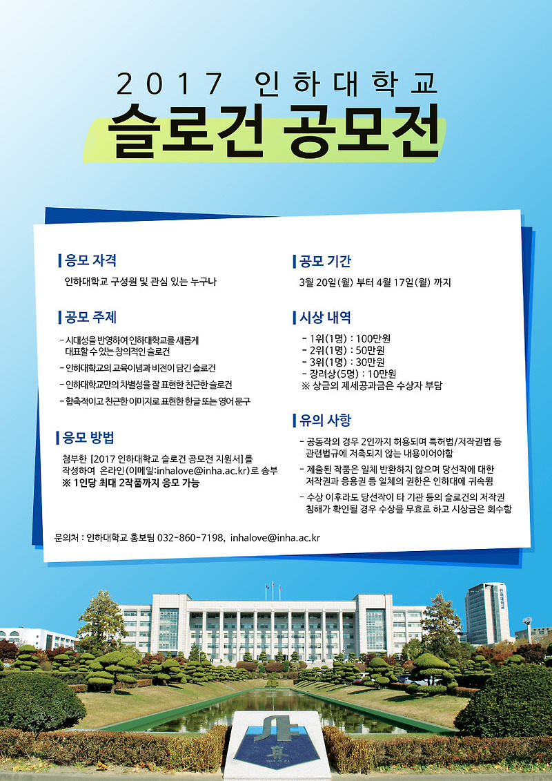인하대 학우 여러분, 기말고사 몸 조심히 잘 보고 오세요~! 2001인하대병원 진료부원장, 외과 주임교수, 외과 과장, 적정진료관리실장 역임. 인하대 무대 오르기 전 winner 빛반사 심해서 이것만 건져왔네.ㅠㅠ 오늘 아루 텐션 이세상거 아니던데. 인하대 총동창회와 인하대의 역사를 한눈에 보실 수 있습니다. 이 갤러리가 연관 갤러리로 추가한 갤러리.